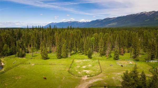 Experience Montana's wild beauty and western charm on this 4.31-acre property at the end of a quiet cul-de-sac, with panoramic views of the Swan Mountains. A cozy log cabin, built on site and offered mostly furnished, sits near corrals, round pens, and a well-equipped barn-perfect for horse lovers and those seeking a more self-sustained lifestyle. The 1,002 sq ft log cabin includes a main-level bedroom, a lofted second bedroom with a balcony overlooking the horse facilities, and one full bath. Outside, you'll find a fenced garden, greenhouse with drip system, chicken coop, two RV hook-ups, and a quality pole barn with two paddocks, hay storage, and tack room. A seasonal creek and rare, natural spring-fed pond add to the charm and utility of the land, while adjacent state trust lands -(100 acres), offer endless opportunities for trail riding with your horses. Bonus opportunity: A contiguous, riverfront parcel is also available, MLS 30046169, allowing buyers the chance to purchase both properties together for a remarkable and expanded Montana legacy retreat. Whether you're seeking a full-time homestead, a seasonal getaway, or a basecamp for Montana adventures, this special place delivers. A short drive brings you to Bigfork Village for dining, arts, and community, with outdoor recreation in every direction-Jewel Basin, Swan River, Flathead Lake, the Bob Marshall Wilderness, Glacier National Park, Whitefish Mountain Resort, Eagle Bend Golf Course, and more.