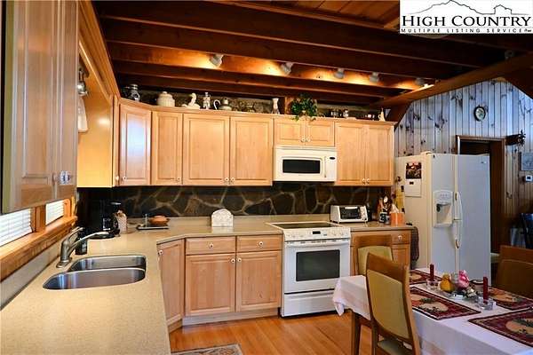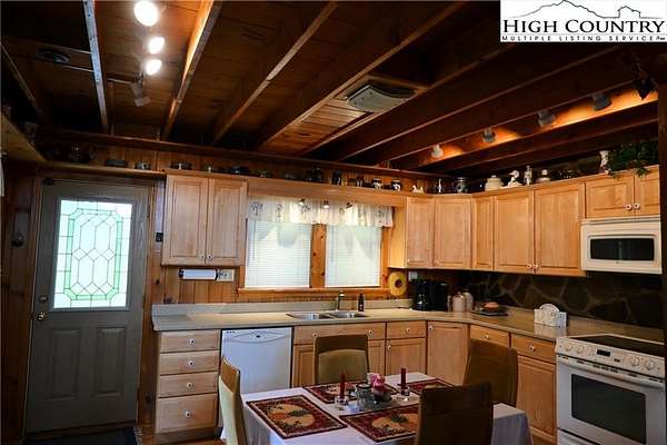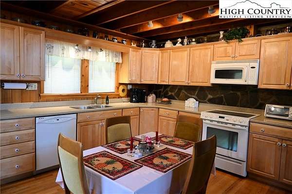 Now Priced Under Appraised Value. Welcome to the North Carolina Mountains. Lovely, low maintenance, turn-key mountain cottage on approximately 2.66 unrestricted acres. This one-level living home has easy access and is located near the Blue Ridge Parkway. Spacious garage includes a workshop and storage area measuring 47.5' x 16'. Living room has a large stone wood burning fireplace for those chilly nights. Open Kitchen/Living room with loft for office use and those overnight guests. There is also an additional 24'x12' outbuilding. Large deck to add to your outdoor peaceful park like experience. Home is being sold furnished, great opportunity for a mountain get-a-away, full-time living or air BNB. Short drive to the New River and West Jefferson to enjoy the arts, shopping, bistro's, breweries, dining, winery, music concerts, hiking and more. See sellers' list of improvements.