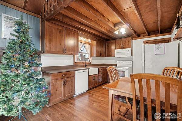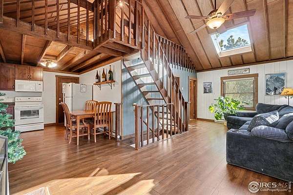 Mountain Cabin Near National Forest 2.16 Acres Near Estes ParkTucked between Estes Park and Loveland, just off Highway 43, this classic Colorado mountain cabin sits on 2.16 private acres near National Forest. It's the kind of setting that delivers true mountain living privacy, wildlife, and room to breathe while still offering convenient access to town.Built in 1977 and thoughtfully maintained, the cabin features 2 bedrooms plus a loft (ideal as a third sleeping area, office, or flex space) and two full bathrooms, with one on the main level and one on the lower level. The main living area is highlighted by warm wood-plank ceilings and a wood-burning fireplace between the kitchen and living room, creating a cozy, inviting atmosphere year-round.Step outside and enjoy frequent wildlife sightings, including elk, deer, fox, coyotes, wild turkeys, and bighorn sheep, often drawn in by the peaceful stream just across the road. Outdoor living shines with a recently refinished wraparound deck on the upper level and an additional lower-level deck, perfect for morning coffee, entertaining, or simply enjoying the forest surroundings.Additional features include a durable metal roof, electric baseboard heating, newer washer and dryer (included), a private water well with strong GPM, septic vault system, and a 4' x 6' storage shed for tools, gear, and outdoor toys. Sellers may be open to including most furnishings, offering the potential for a turn-key mountain retreat.Whether you're looking for a full-time mountain home, weekend getaway, or investment property near Estes Park, this cabin offers a rare blend of land, location, and lifestyle.
