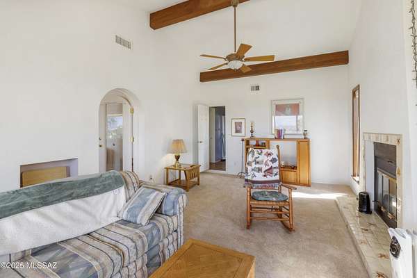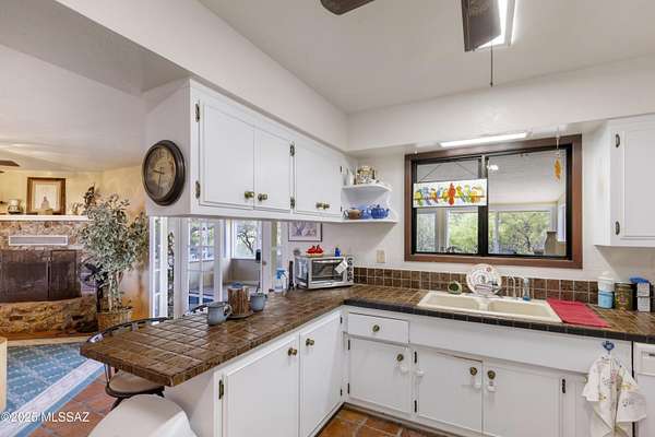 Charming Hilltop Retreat with Great Views and a Guest House on 2.58 Private Acres. Spacious 3-bedroom, 3-bath home, 1,893 sq ft of living space in the home and 1263 in the guest house nestled a top a serene hilltop. The property is beautifully covered with mature oak trees, offering shade, privacy, and a picturesque natural setting. 2 wood-burning fireplaces, with 1 located in the dining area and the 2nd one in the versatile family room/den--perfect for a potential 4th primary suite with its own bathroom, creating a desirable split floor plan layout. Large dining area with a rock fireplace, a sunroom/Arizona room, and a pantry with ample storage. Enjoy outdoor living on the expansive brick patio, ideal for entertaining or relaxing under the trees. 2-car carport with 2 storage room laundry room with extra storage. Hot tub (conveys as-is; owner has never used it) The property also includes a charming guest home approximately 1,263 square feet complete with a covered front porch, AC, large storage room, bathroom, and kitchenette area perfect for guests, multi-generational living, artist studio or work shop. This unique property combines space to spread out, privacy, and versatility ideal for those seeking comfort and room to grow in a peaceful, oak-studded setting.