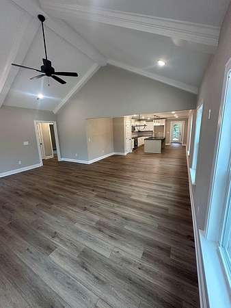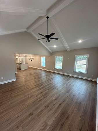New construction in Young Estates, located on a quiet cul-de-sac just minutes from downtown Hamilton and the community walking trails. This home offers an open floor plan with vaulted ceilings in the main living area, creating a comfortable flow between the living room, dining, and kitchen spaces. The kitchen features granite countertops, a large pantry, and stainless appliances, providing everyday function and ease. The primary suite includes a tray ceiling, double vanity, large walk-in tiled shower, and two walk-in closets for storage and organization. Two additional bedrooms and a full bath allow space for guests, office needs, or hobbies. Enjoy time on the covered back patio with a wooded view that adds privacy and outdoor appeal. Additional features include spray foam insulation, Hardie plank siding, architectural shingle roof, and a single-car garage. A thoughtful layout in a convenient Hamilton location - completion expected soon.