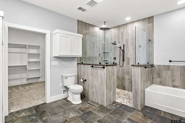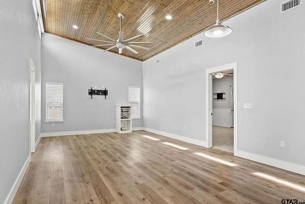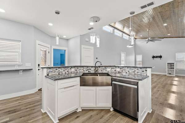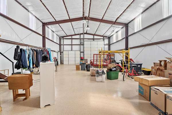 This 2022-built home is a rare find for RV owners and outdoor enthusiasts! Located on the north side of Mineola, TX, it offers nearly 2.5 acres of unrestricted land -- no HOA, no restrictions, just space, privacy, and freedom. The property features a massive 1,860 Sq. Ft. insulated garage/shop with a 14 ft. door and a full 50-amp RV hookup -- perfect for your RV, boat, or fifth wheel. There's even room for two additional vehicles and a large loft for extra storage or workshop space. Inside, the home offers 1,574 Sq. Ft. of comfortable living space with 2 bedrooms, 2 full baths, plus a half bath for guests. The kitchen boasts granite counters, ample cabinet space, and a gas range. The primary suite features dual vanities, a walk-in shower with three shower heads, a full soaking tub, and aerial windows with remote-controlled blinds. Modern amenities include a tankless gas water heater and fiber optic internet. Enjoy lake adventures with Lake Holbrook just 3.5 miles away and Lake Fork only 13.5 miles from home. The metal siding and roof make maintenance easy, while the expansive lot provides space for pets, gardens, or additional outbuildings. Whether you're a full-time RVer, weekend adventurer, or snowbird, this property is the perfect home base for your lifestyle.