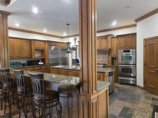 Lavish, OKC mansion! Gated entry. 6,184 sq ft(mol) situated on 7 acres(mol). Quick access to I-35, I-235 & downtown OKC. Amazing grand foyer featuring an impressive winding staircase. Two(2) master suites! 4 or 5 bedrooms, 5 1/2 bathrooms, 3 living areas, formal dining room plus a 5 car garage & portico. This home also features a gourmet kitchen with loads of counter top space, island with seating, stainless appliances plus an abundance of storage space. Great outdoor space including an inground pool, expansive open patio area plus a large covered patio with built-in grill and service bar. Other exterior features include wrought iron fencing, a circle driveway, natural waterfall, hiking trails, plus more. All nestled amongst 7(mol) beautiful & serene acres.
