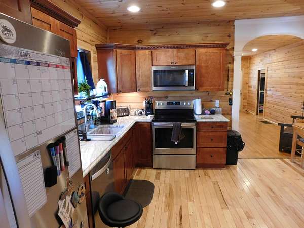 Come fall in love!! Turn key and Absolutely stunning, 2400 square foot Colonial home w knotty pine interior and exquisite maple, pine and hickory hardwood floors through out! 1st floor has a beautiful kitchen w a woodstove, stainless steel appliances, granite counter tops, ample cupboards and cabinets, pantry. LG bright and sunny living room w wood burning fireplace. Office, laundry room and storage , plus a spacious first floor full bath w huge romantic , tiled shower big enough for 5-6 people!! Upstairs has 4 big bedrooms, some w walk in closets and another full bath w jacuzzi tub, plus a walk up attic. Outside you have a fenced in yard, front covered porch, above ground pool and an oversized 2 car garage w workshop and additional storage. Lee is a small community in Penobscot county and is the middle of 1000's of acres of forest. You are directly on the ATV/ITS trail and surrounded by lakes, ponds, streams and rivers. So if fishing and hunting is your idea of fun, this is a perfect match for you ! Also, Mt Jefferson is right across the street for skiing and snow boarding!! Get out of the fast lane and move to LEE MAINE !!!