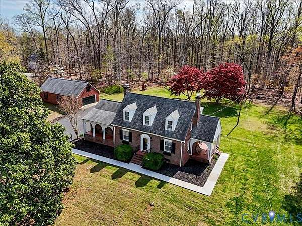 Welcome to Kedgebrook! Built in 1939 by the Bull-Kirby railroad family, Kedgebrook has been meticulously restored by its current owners since 2019, including tasteful and appropriate enhancements that preserved many original elements and materials throughout the renovations - all residing on 19.4 of mostly wooded acres spanning Little Hounds Creek. These land features make a natural wildlife environment that brings deer, turkey, fox, black bear, hawks, owls, rabbits, squirrels, toads, and turtles on the property. This home features 4 bedrooms, including a choice of 1st or 2nd floor primary suite and 2 bathrooms. The foyer, large formal dining room and spacious living room share tall ceilings, chair rail and crown molding details original to house. The original wood-burning fireplace provides warmth and comfort, as one of 4 methods of heating in the home, along with a new oil boiler, new heat pump with A/C and wood burning stove. The spacious galley kitchen hosts a pantry/ prep area, primary galley kitchen, and a breakfast nook. The kitchen has been outfitted with custom cabinets, non-porous quarts countertops and full height back splash, and decorative side and back splashes. Rift sawn oak flooring was brought in from a Tennessee mill to match the original hardwood species and cut, then the flooring throughout both levels has been beautifully refinished. Custom milled moldings replicated in Richmond recreated the original trim details to ensure the character of this brick Grand Cape retains seamless original pre-war era character throughout. All appliances convey: Stainless steel bottom mount refrigerator with Icemaker, Microwave, Pantry chest freezer, Stainless steel dishwasher, Washer/Dryer, Stainless smooth-top glass range, Stainless steel top-mount refrigerator with icemaker (In Garage).
