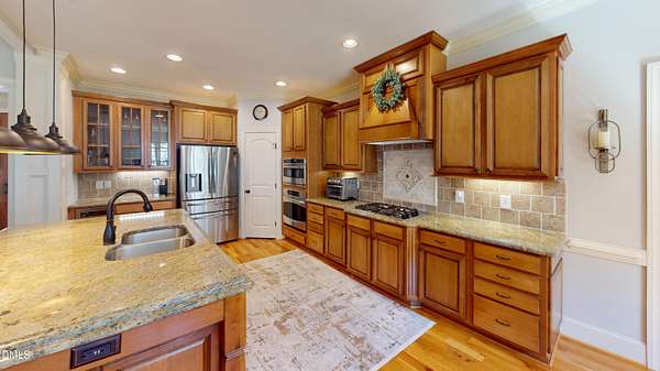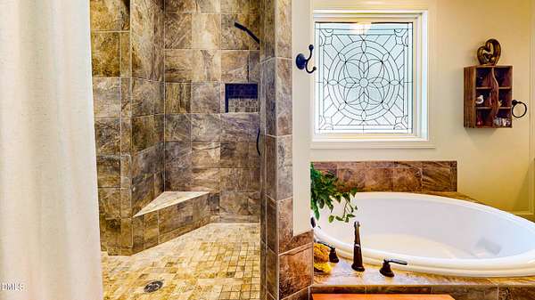 Welcome to your private oasis at 2800 Shepard School Road in Zebulon, NC. Built in 2009, this exceptional 3,000-square-foot custom brick and stone home sits on a sprawling 10-acre lot, offering the ultimate blend of luxury and country living. The light-filled, open main floor features beautiful hardwood floors throughout. Entertaining is a dream in the stunning eat-in kitchen, boasting 42'' maple cabinets, an extensive island, granite countertops, stainless-steel appliances, and a wine chiller. Relax in the family room with its cathedral ceiling and dual-sided gas log fireplace, or host in the formal dining room complete with a coffered ceiling and detailed moldings. The main-floor master suite is a true retreat, featuring a two-sided fireplace, his and her vanities, a soaking tub, an extra-large dual-sided shower, and a large walk-in closet with built-in storage. Upstairs, you'll find two additional bedrooms and a versatile bonus suite. Outdoor enthusiasts will fall in love with the wrap-around front porch, screened rear porch, and slate patio overlooking a park-like setting. The property is an adventurer's dream with extensive, well-maintained ATV trails, a rifle and pistol range with a fire-pit, and a creek running along the property line. Complete with a two-car side load garage and a detached 16x24 workshop with power and water, this property truly has it all.