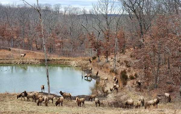 The property boasts a prime location for a significant lodge, with breathtaking views of the Ozark Mountains. It is home to one of Missouri's largest elk herds, with the herd estimated to go over 100 elk in the spring. The estate features multiple ponds, a 4-acre lake, and another lake over an acre in size, as well as numerous springs and 4 major tributaries, 3 of which have year-round water. The animals in the preserve have an estimated value of $1,000,000.