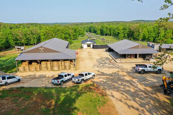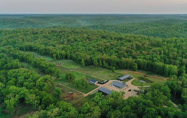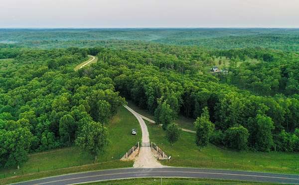 This exceptional 690 +/- acre estate, high-fence wildlife preserve, offers a rare opportunity to own your private slice of natural paradise. Immerse yourself in the breathtaking terrain of the Ozarks, with rolling hills, lush forests, and over 35 miles of scenic trails. Whether exploring the property's beauty, enjoying world-class hunting, or relaxing at your lodge, this land promises unmatched serenity and adventure.