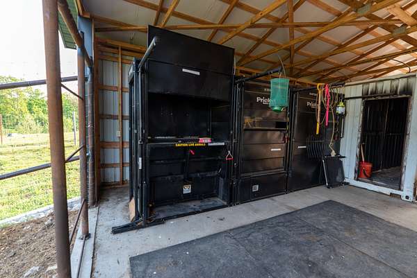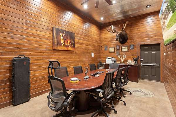 The estate features a breeding facility that includes a fawn barn with numerous stalls for fawn success, 16 deer pens with loafing sheds, four elk pens, a vet room, a large custom office with a meeting room, a workshop, and a toy garage. There are also on-site fuel tanks, 3 wells, and multiple large permanent hunting blinds. High-speed internet is available throughout the property, providing modern convenience in a rustic setting.