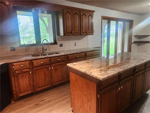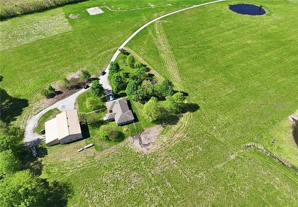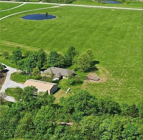 Beautiful 20 acres with 3bdrm/3bath ranch home that sets well back off the road and is surrounded by mature trees. Built by a local builder the quality and craftsmanship show. Just refreshed interior with new floor coverings, backsplash, granite counter and fresh interior paint. Large mudroom/laundry and conveniently located 3rd bath coming in from outside.Spacious country kitchen with island and large eating area flows into cozy living room featuring built ins - creating a warm and inviting space. An additional room off living room offers flexibility for a second living area, home office or quiet place to relax. Nice sized primary and secondary bedrooms. Two car garage and full basement for great storage. Outbuilding with storage area plus man cave/living quarters with kitchen and bath. Convenient location - just a few minutes to I-49 or back into Harrisonville.