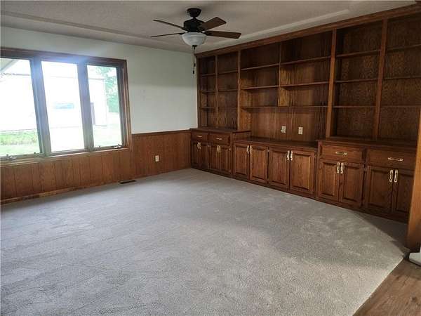 - Ceiling Fan(s), Central Vacuum, Stained Cabinets