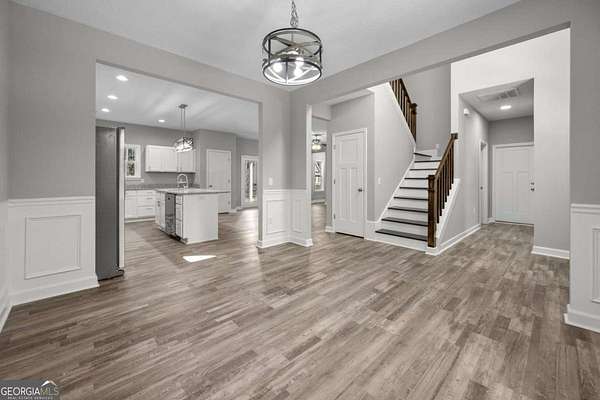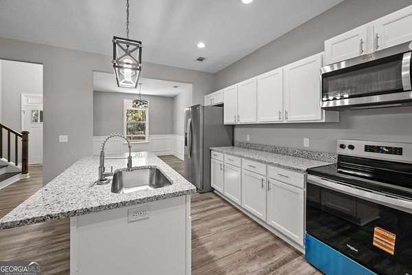 New Construction - The Golden Eagle Built by Maybank Partners Welcome home to the this stunning two-story retreat nestled on 3.64 acres with a breathtaking pond view in serene Townsend, GA. This 2055 sqft beauty by Maybank Partners offers the perfect combination of modern amenities, tranquil living, and plenty of space for your family to grow. As you step onto the huge front porch, you will feel warmly welcomed but when you open the door and walk inside - it just feels like home! You will fall in love with the spacious, open-concept living area. The living room features a beautiful fireplace - perfect for a chilly evening or just to create a cozy ambiance. It flows seamlessly into the formal dining room with elegant wainscoting, setting the perfect atmosphere for family dinners or entertaining friends. The kitchen is a chef's dream, with sleek granite countertops, stainless steel appliances, and a large island for meal prep or casual dining. Imagine preparing meals while enjoying views of your private pond just outside. It's an entertainer's paradise! The primary suite is a peaceful retreat located on the main floor. With vaulted ceilings and a large walk-in closet, it's a place to unwind. The ensuite bathroom offers a luxurious tiled shower and double vanities for added convenience. Upstairs, you'll find 3 spacious bedrooms, perfect for family or guests, and a full bathroom. The huge covered rear porch is the perfect spot to enjoy your morning coffee while soaking in the serene pond views, and the expansive front porch adds charm and curb appeal. Whether you're hosting gatherings or enjoying quiet evenings, this home offers the best of both worlds. With luxury vinyl plank flooring throughout, a private deep well, and a two-car garage, this home is designed with your comfort and convenience in mind. Located just a short drive from Jesup, Fort Stewart, and the coast, you'll have all the peace and privacy you crave, yet the convenience of being close to town. Don't wait - schedule a tour with the builder today and make the Golden Eagle your forever home! Disclaimer: images used are for illustrative purposes only and may not reflect the final product.