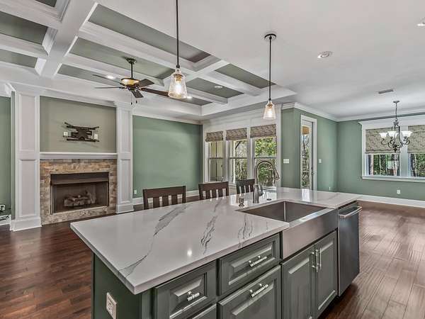 One or more photos have been digitally enhanced. Nestled on 2.1 private acres in highly desirable Northeast Tallahassee, this beautifully built 2017 home offers 3 bedrooms, 2.5 baths, and 2,178 square feet of thoughtfully designed living space. The open floor plan features soaring coffered ceilings, abundant natural light, and a seamless flow perfect for both everyday living and entertaining. The spacious kitchen opens to the main living area, with plenty of seating at the large island and adjacent dining space, high-end stainless steel appliances, soft close cabinets, tile backsplash, and spacious pantry provide an elegant and enjoyable space to congregate and enjoy both informal and formal meals. The primary suite provides a relaxing retreat, with a spacious walk-in closet and a well-appointed bathroom with double sinks, walk-in shower and separate tub. An additional flex space with beautiful barn doors and plantation shutters would make an excellent library, play room, den, formal dining area or private office. A three-car garage offers ample storage and flexibility, and the laundry room comes with a useful utility sink with a granite counter and cabinet space underneath. Enjoy the privacy of a large 2+ acre tree-lined lot with NO HOA, while still being just minutes from Maclay Gardens, public parks, shopping, dining, medical facilities, and convenient I-10 access. Zoned for Gilchrist, Montford, and Lincoln schools, this is a rare opportunity to enjoy peaceful acreage living without sacrificing location.