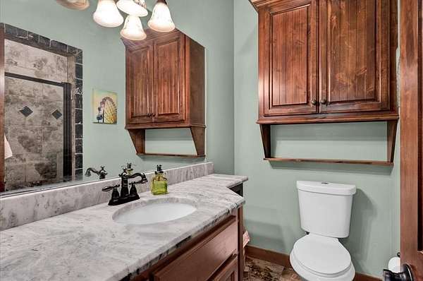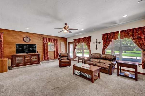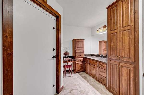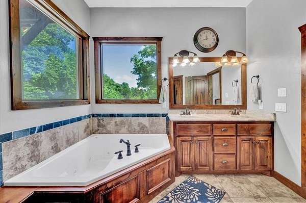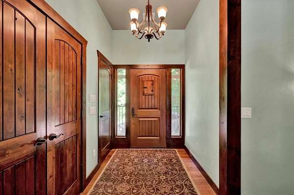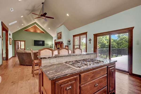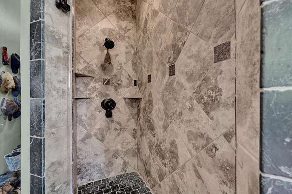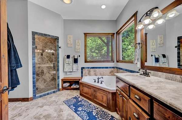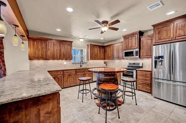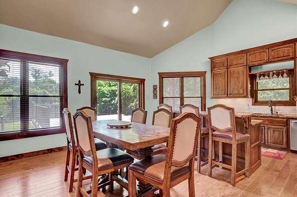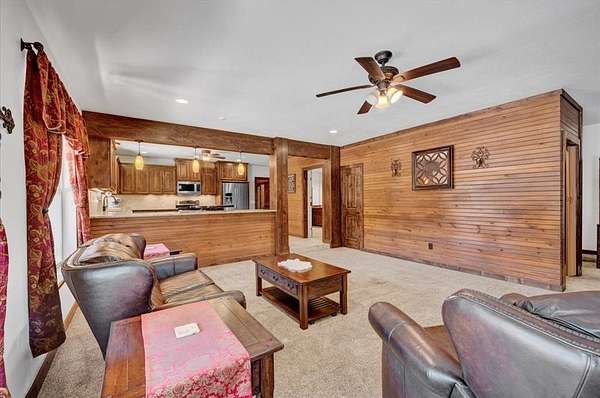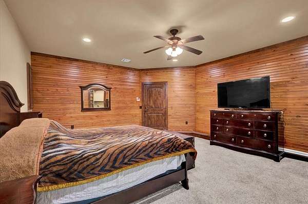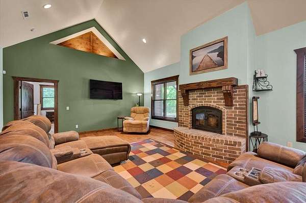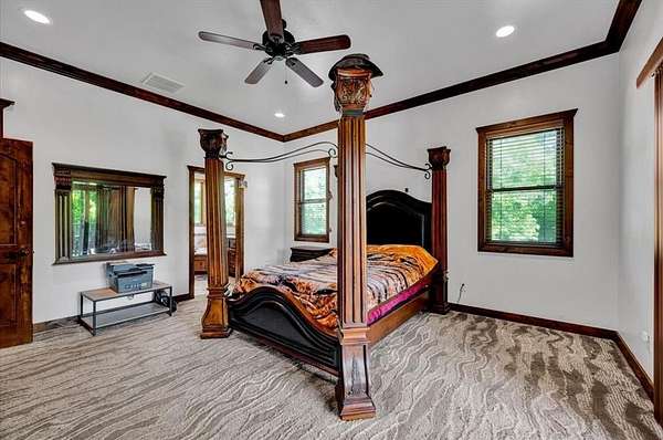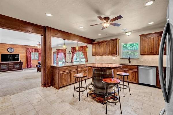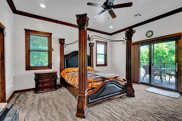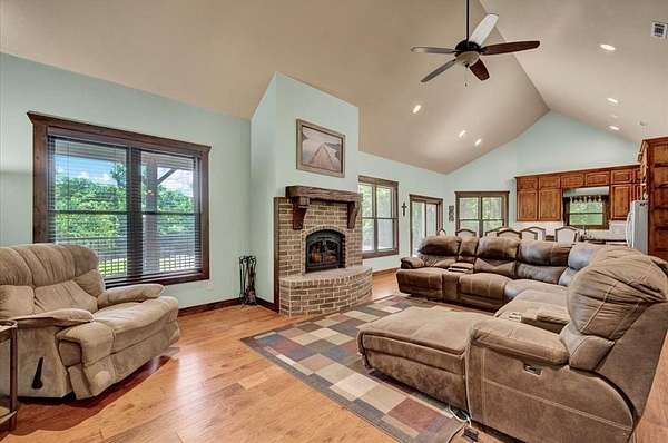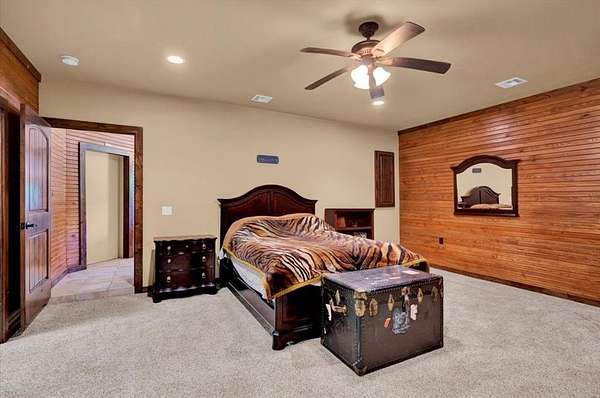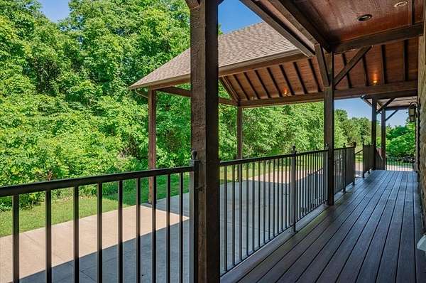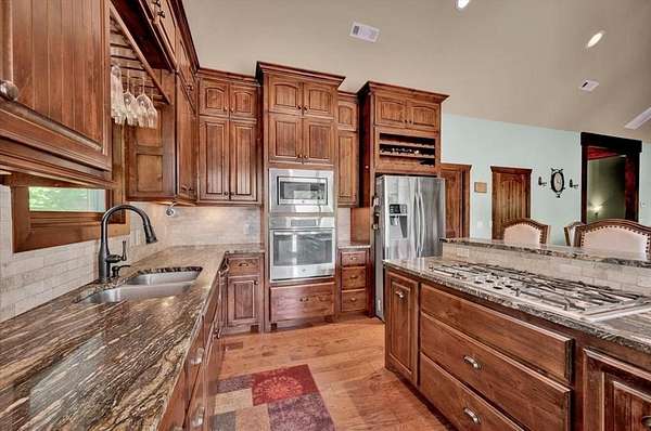 Welcome to one of North Edmond's most distinctive & private residences, a custom-built, 1 owner log-style estate on 10 wooded acres (MOL) just off Coltrane, minutes from Waterloo's growing development yet worlds away in peace & quiet. Reminiscent of a mountain or lakeside retreat, this log-cabin-style home blends rustic luxury & multigenerational versatility, featuring wood log siding, a seasonal pond at the entrance, & a tree-lined drive opening to a circular motor court. Designed as 2 fully equipped residences, the lower level offers a spacious living room w/ office nook, full kitchen w/ breakfast bar, master suite w/ laundry & garage access, & an earth-sheltered safe room bath complete w/ jacuzzi tub & shower combo + steel safe doors. Upstairs, soaring cathedral ceilings & hand-scraped oak floors set the tone for a 2nd open-concept space featuring a full kitchen w/ gas range island, wine glass storage, granite counters, pantry, & large living room w/ stone fireplace. Multiple doors open to the expansive wraparound TREX deck w/ forest views, built-in fireplace, & pre-wired hot tub pad above the garage. The upstairs suite includes private deck access, a spa-like bath w/ dual vanities, walk-in shower, corner jacuzzi tub, & 2nd walk-in closet. A 2nd laundry/mudroom, full bath, & rear entry through a two-story porte cochere designed for RV parking complete the upper level. The home is connected by interior & exterior staircases, + an accessible ramp--perfect for guests, parents, or independent adult children. A 60x40 steel shop adds major value w/ large RV door, 2 garage bays, framed paddock doors, pre-wired RV hookups, & a climate-controlled flex room w/ full bath for a guest suite, tack room, or workshop. The slab in the barn area is inset & ready to be built out for horse stalls. Surrounded by mature trees, nature & total privacy on a secluded low-traffic road, this is a rare sanctuary for those seeking space, luxury, & flexibility without sacrificing convenience.