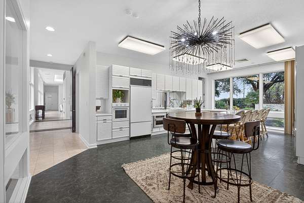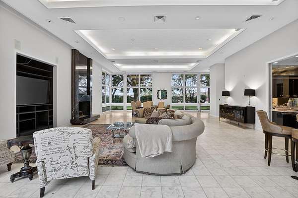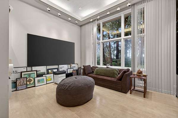 Custom-built estate on 1.52 acres in the highly sought-after PNG-ISD, designed by Beaumont Architects. This exceptional property offers high ceilings, oversized doors, and floor-to-ceiling windows that flood the home with natural light throughout. Features include hurricane shutters, a dedicated safe room, full sprinkler system for the entire yard, and a gated rear entrance for added privacy. The thoughtfully designed interior boasts a full butler’s pantry, wet bar with wine storage, private sauna room, theatre room, and a spacious living area with floor outlets for flexible furnishings. The primary suite features a sleek drop-down TV concealed in the ceiling, while a second fireplace adds comfort and charm to the guest bedroom. An ideal blend of luxury, functionality, and security on a prime parcel—this home is truly one of a kind. Seller states Refrigerator in kitchen does not work, but one in butler pantry does.