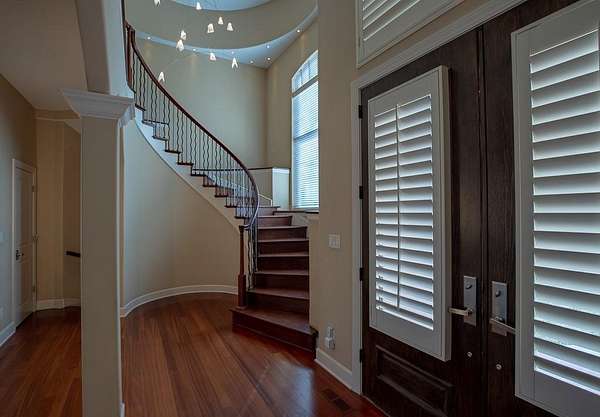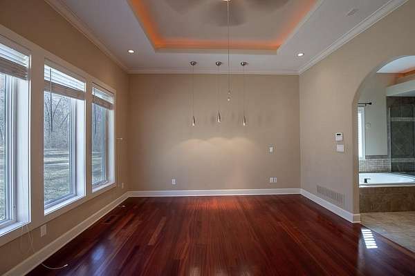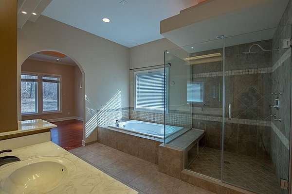 Est $4,887/moPrivacy in a peaceful setting! Gorgeous 4 Bedroom 4 1/2 bath 1 1/2 story nestled in trees! Spacious floor plan-Great for entertaining. There is a level for everyone! Enjoy the sunroom to watch the wildlife and birds! huge master bedroom on the main level w/jetted tub and large walk in closet. 3 bedrooms upstairs w/balcony and 2 full bathrooms, Finished basement to include exercise room, office with built in bookcases, family room and lots of storage. This is a must to see!