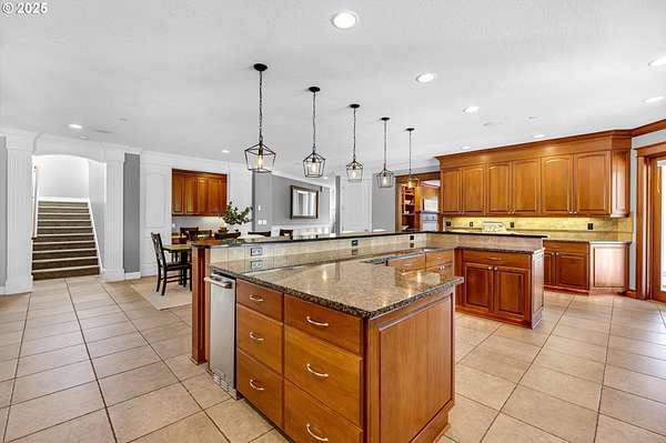 - Builtin Refrigerator, Dishwasher, Disposal, Double Oven, Free Standing Gas Range, Free Standing Refrigerator, Gas Appliances, Granite, Instant Hot Water, Microwave, Pantry, Plumbed For Ice Maker, Range Hood, Solid Surface Countertop, Stainless Steel Appliance, Wine Cooler