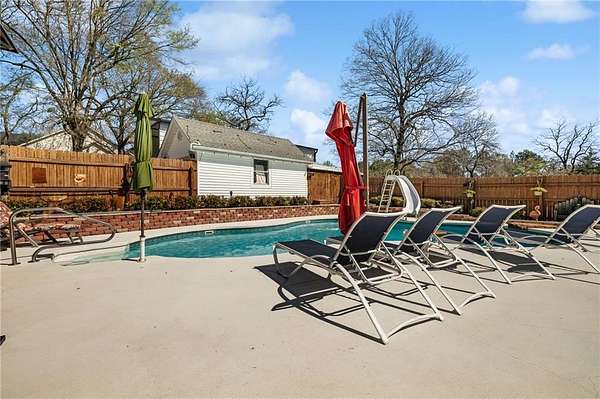 Welcome to your private backyard oasis on 2.65 acres! This 3-bed home offers a flexible layout with 1 bedroom downstairs & 2 upstairs. Inside, you’ll find a kitchen with a large island & a cozy living area with a fireplace. The sunroom features protective windows designed to reflect heat, keeping the space comfortable year-round. Step outside to enjoy a backyard retreat complete with a fenced in chlorine pool (with timed pump) surrounded by “cool deck” concrete that stays comfortable underfoot. Relax under the pergola-covered hot tub or host gatherings in the grill area with bar seating. A pond with a swim platform adds even more charm. The property includes an RV carport (41 ft deep, 14 ft tall) with full hookups, 250 sq ft workshop, & 2-car garage with epoxy flooring & a third garage area. Additional highlights include 3 HVAC units for efficient climate control. This home truly combines functionality, comfort, & outdoor living at its best!