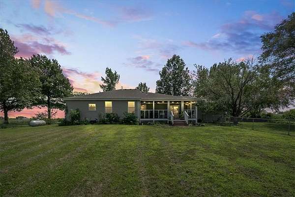 Enter this 4 Bedroom, 2 Full Bathroom Ranch home and you will immediate appreciate the relaxation that comes with country living on your own 6 acres! Large mature trees frame and shade the house and yard. The pride in ownership shows in every room of this home! Step in from the covered front porch into a large living room with beautiful bay window. Make your way through the Country Kitchen into the lovely master suite with large soaker tub and walk-in closet. Enjoy the additional 3 bedrooms and full bathroom with double vanity. Head down to the partially finished basement which offers a family room as well as ample storage area! And then it is time to tour the back of the home and property. Walk through the sliding glass door onto the large covered deck that is ready for you to enjoy quiet mornings and relaxing evenings. You can fill your days by enjoying the scenery, or bring your animals! The outbuilding has two large stalls, loft for storing hay, tack room and ample storage for other equipment. Approximately 4 acres of pastures are freshly mowed and ready for your horses or small livestock. And the chicken coop the chickens can stay as well! All of this within minutes from Lee's Summit! Sellers did notice a crack in living room wall in mid-October and immediately had a structural engineer out to access why. Based on recommendations by the structural engineer, foundation repairs have been made with a transferable warranty so that both sellers and buyers can have piece of mind for decades to come!!