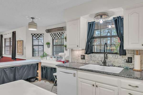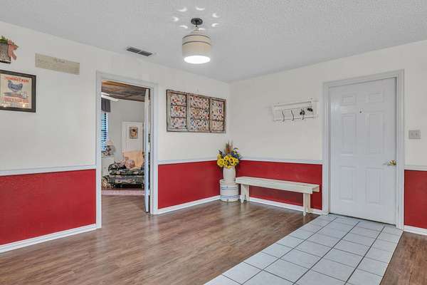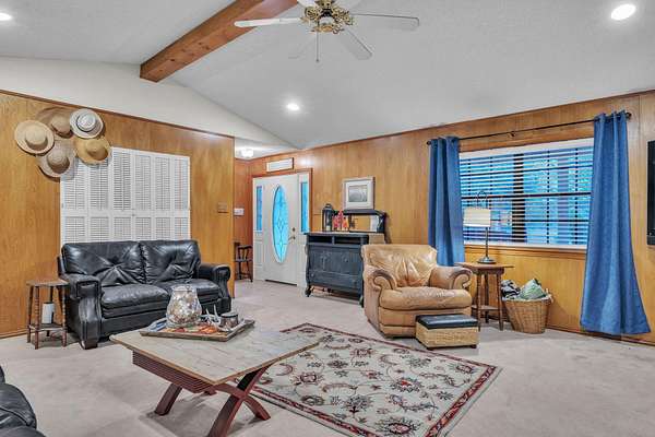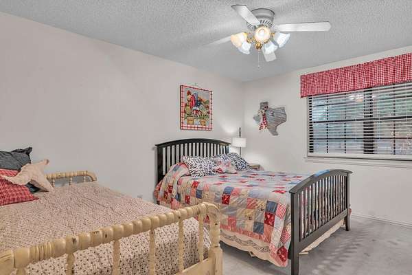 - Blinds, Carpeting, Ceiling Fan, Shades/Blinds, Tile Flooring, Vinyl Flooring