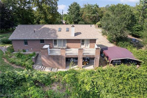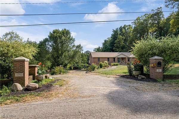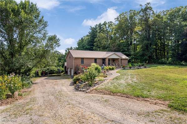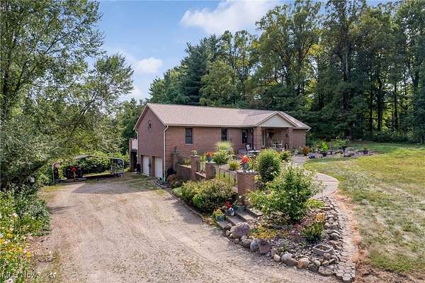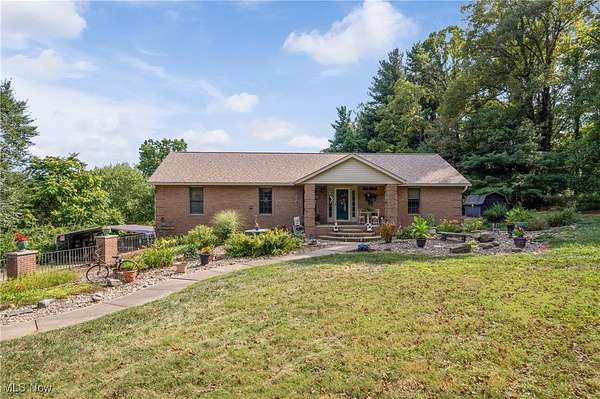 Welcome to your serene retreat! This stunning brick ranch home boasts an expansive open floor plan, perfect for modern living and entertaining. Situated on 5.6 picturesque acres in Canton South, this property offers a perfect blend of privacy and accessibility. As you enter the home, you're greeted by a spacious living area flooded with natural light, showcasing beautiful finishes and a seamless flow between the kitchen, dining, and living spaces. The gourmet kitchen features solid cherry cabinets, porcelain sink, ample counter space and modern appliances, making it a chef's delight. The home features three bedrooms, including a luxurious primary suite with walk-in closet and a full bath, along with double doors leading to the private backyard offering a tranquil space to unwind. Large windows and skylights provide breathtaking views of the surrounding landscape, enhancing the feeling of spaciousness and connection to nature. With a well planned split bedroom floor plan, your guests will have privacy with two large bedrooms and full bathroom. First floor laundry. The walk out basement awaits your creativity along with a built in storage room leading to the second covered porch, so convenient! Exit the house to find your own personal oasis, where the expansive grounds offer endless possibilities for outdoor activities, gardening, or simply enjoying the beauty of nature. Two car garage plus carport and storage shed for your items. There is plenty of room for a pool, workshop, or additional structures, this property is a blank canvas ready for your vision.Conveniently located near highway access, this home combines the peace of rural living with easy access to modern conveniences. Updates include roof 2024, HVAC 2020. Don't miss the opportunity to make this dream home yours!