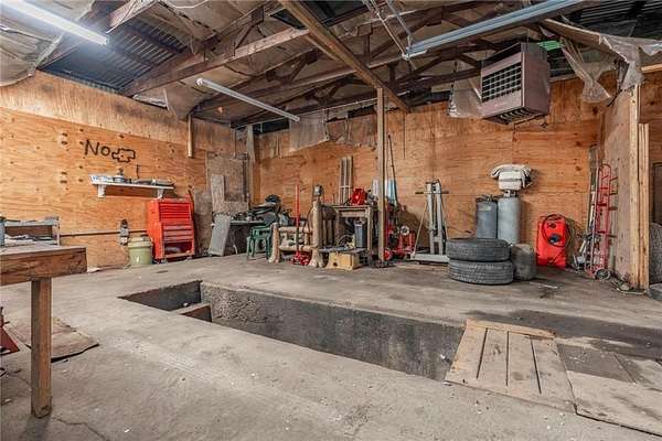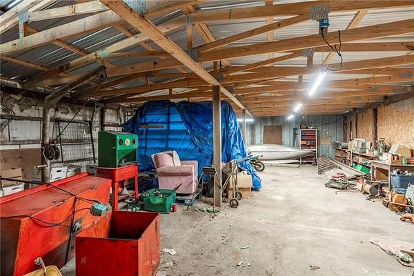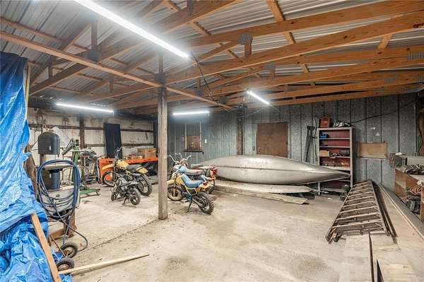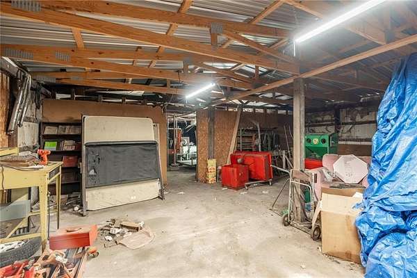 The main part of the property used to be the McBride motorcycle showroom and service center. The main building on the south side of the property is a commercial office building that is currently on a month-to-month lease as a weekend bar at $500/month. New owner could look to increase lease or use the building themselves to run a new business out of. Attached to the commercial building is approx. 7500 sq ft of warehouse space that used to be the parts and service area. There are 4 bay doors in the back of this building, and one even has a in ground mechanics pit built in. Back 3 doors are being leased at $350/month on a month-to-month lease, but new owner could occupy or increase rent. There are also 2 residential dwellings on the property that are currently uninhabitable but could be fixed up for new owner to live in or to rent out. There is an open field area in the middle of the property that is just field and could be used for many different things.