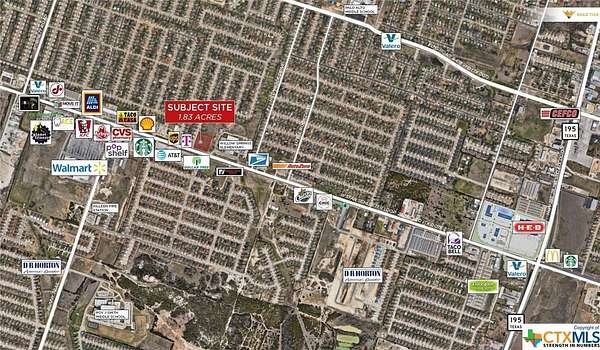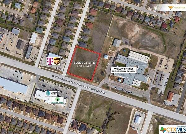 Est $8,811/moThis offering is for 1.83 acre commercial pad site on Stan Schlueter Loop in Killeen. This site is in an excellent location next to major retailers, such as H.E.B., Walmart, Starbucks and McDonalds. With excellent road visibility and traffic counts exceeding 23,000+ cars daily, this site is ready for development. The City of Killeen future land use map has this site identified as Regional Commercial.