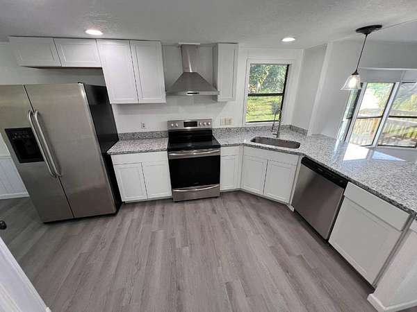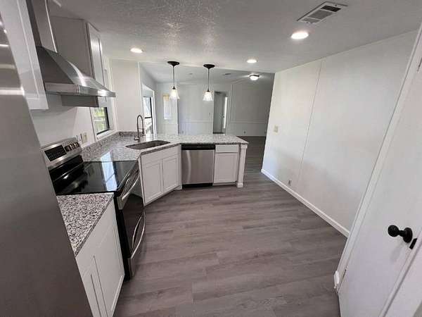 Fully renovated 3 Bedroom, 2 bathroom plus a large bonus room for an office or workshop. This Beautiful and freshly renovated home sits just under 6 acres of secluded land with a lot of privacy among large mature Oak Trees. It Features a Doublewide manufactured home with a split floor model, large Master bedroom, large master bathroom with new double sink vanity and extra space to add a soak tub. Stay cozy in the winter with the wood-burning fireplace on this home's large living room! Brand new luxury waterproof vinyl flooring throughout the house. New renovated open concept kitchen with a separated dinning and dinette area plus a granite countertop with a sit in lunch area and stainless-steel appliances, including a modern exhaust hood, walk in pantry and new kitchen cabinets. New water heater, new water filtration system, central AC, metal roof and a storage/work shed. Property is just minutes away from town, no HOA. Don't lose the opportunity to have this Oasis surrounded by nature.