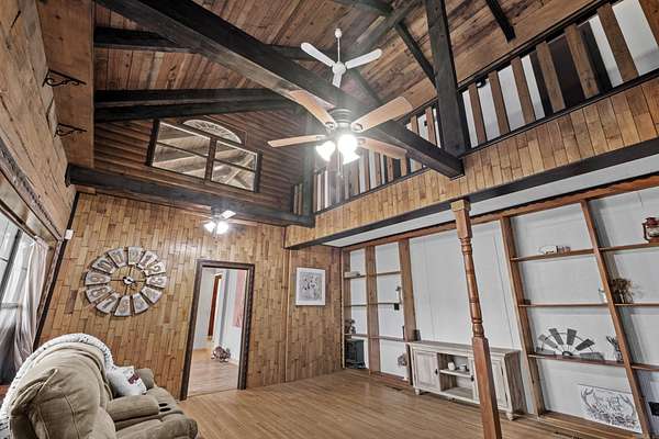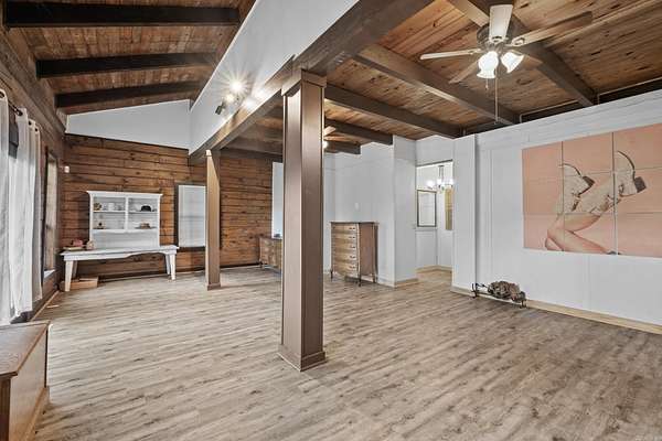 Welcome home to this stunning 3,400 sq ft log cabin nestled on nearly 3 peaceful acres. From the moment you arrive, you’ll love the oversized front porch overlooking the pond — the perfect spot for morning coffee or evening sunsets. Inside, rustic charm meets cozy cabin with vaulted ceilings, wooden beams, and a breathtaking floor-to-ceiling rock fireplace that anchors the main living space. The layout offers 3 spacious bedrooms, a bonus room, and 1.5 baths with plenty of room to spread out. Outside, you’ll find an impressive 48’ x 36’ metal shop ideal for hobbies, storage, or workspace needs and a large carport perfect for storing all of your outdoor toys — all while enjoying the privacy of country living just minutes from town and the freeway. Square footage is approximate. Measuring encouraged. Agents see remarks