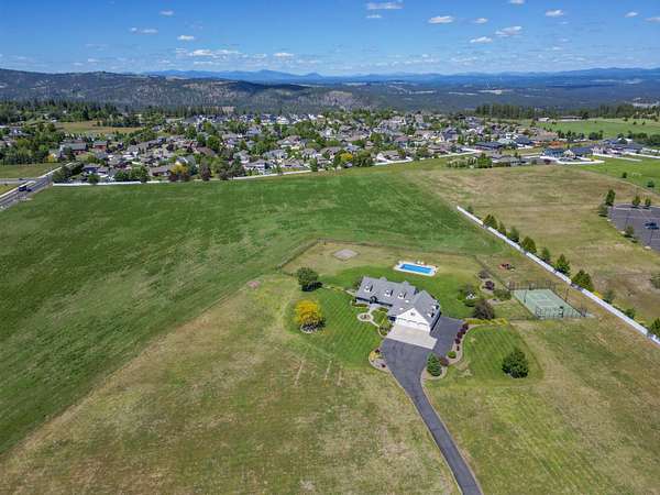 Iconic Five Mile Home on 5 Acres - Beautifully updated throughout this year, the home is Move-In Ready. This private estate sits 200 ft off the road on 5 serene acres in the highly sought-after Mead School District. Ideally located just minutes from town and shopping, and adjacent to Prairie View Elementary with Highland Middle School across the street. The expansive 1+ acre fenced backyard includes a spacious deck, in-ground pool (full sun all day), sport/pickleball court, and views of Mt. Spokane. Inside, enjoy a stunning great room ideal for entertaining, main-floor primary suite, and laundry. Upstairs features 3 large bedrooms, 2 full baths, and a versatile loft area. The finished basement offers a spacious family room, 2 more bedrooms and a full bath. Oversized 3-car garage with workbench, gas heat rough-in, and 900 sq ft of unfinished space above. Three adjacent 5-acre parcels also available for purchase.