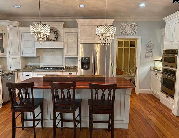 Beautiful 6-bedroom, 4.5-bath home situated on 3 private acres at 2805 Priceville Rd in Gilbert, featuring a swimming pool and peaceful wooded setting just minutes from Lexington. True pine hardwood floors span the main level, complemented by a gourmet kitchen with granite countertops, gas cooktop, built-in wall ovens, and a large wood-top island. The spacious great room offers built-ins, a dry bar, and gas fireplace, while the main-level owner’s suite includes an Air Jet tub, custom tile shower, double vanity, his-and-her closets, and a private screened porch with separate entry. Upstairs features five additional bedrooms and a bonus room, including two private baths and a Jack-and-Jill layout. Enjoy outdoor living on the oversized screened porch overlooking the backyard and pool in a serene, private setting. Disclaimer: CMLS has not reviewed and, therefore, does not endorse vendors who may appear in listings.