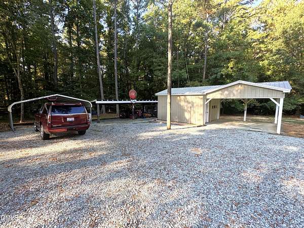 Rare Country Retreat. Just Minutes from the City! Charming 1,978 sq ft ranch on 2.01 wooded acres with big covered porches, open kitchen/living room with cozy fireplace, and inviting den. Features 3 bedrooms, including a guest room with en-suite bath and an extra-large private primary suite with tub, shower, and walk-in closet. Gorgeous bay windows bring the outdoors in. Expansive parking, workshop with covered porch, plus two large covered parking/storage areas make this perfect for a mini farm or private estate. Enjoy privacy, space and an additional 14.78 wooded acres (MLS #10128960) are also available for purchase, making this the perfect opportunity to create a private mini farm or a rare rural estate close to everything. This one is truly a must-see and sure to be in high demand. Convenient to Durham, Chapel Hill & Raleigh this rare opportunity won't last!