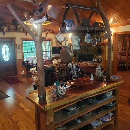 This is truly a once in a lifetime cabin. Custom built with extensive woodworking that you don't see every day on almost 5 acres located within a half mile from the Ichetucknee River that allows you three private entrances to the river for tubing and a private boat ramp. Deer are a daily enjoyment, while listing this home I was pleasantly greeted by them. When you walk in the front door you will be overwhelmingly surprised with the craftsmanship of wood and all the extras. The kitchen was thoughtfully planned to bring out the chef in you. The sizeable master retreat with custom made bed, the two-person jacuzzi. and the steam shower will be the hit of your day. The living area is very spacious with plenty of room for friends and family to gather. The handcrafted fireplace can be enjoyed in the family room as well as the master suite. You will find breathtaking views from every window in the home. Upstairs there is an additional space that can be turned into a 3rd bedroom or office, loft etc. it is fully wired and ready for drywall. The home is being sold turnkey, so put this on your must-see list today as you will not be disappointed.