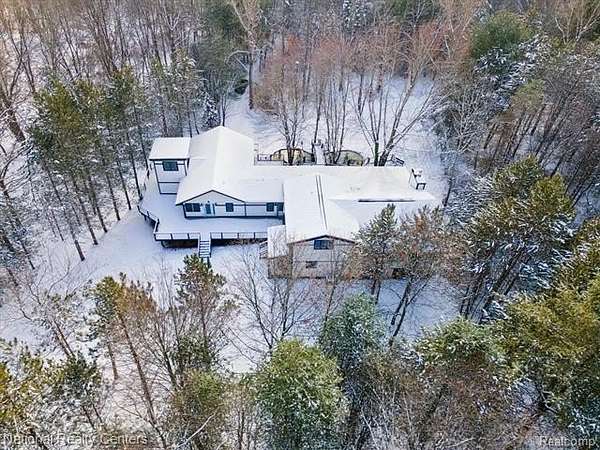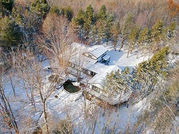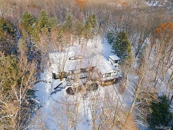 Secluded Retreat Deep in the Woods! 22 Acres of Privacy and Nature welcomes you to your private woodland sanctuary! Surrounded by peaceful nature and abundant wildlife, this expansive 4,335 sq ft home plus 908 sqft daylight finished rec area offers the perfect blend of rustic charm and modern comfort. Deer, owls, and our native bald eagles make this secluded paradise their home and you can too! This one-of-a-kind property has many recent upgrades while still offering opportunities to make it your own. The original home was built in 1986, with a stunning addition added in 2012 featuring energy-efficient geothermal heating and cooling. If desired the main level layout can easily be opened up to create a more, open floor plan. Recent (2025) updates include:o New propane furnace and A/C for the original portion of the homeo New roof on original home and new gutters throughouto Fresh interior and exterior painto New carpet in the lower level, first-floor primary suite, and deno New laminate flooring in the entry and main foyer and dining areao Extensive deck rebuilt with new boards and guard rails wrapping around three-quarters of the home.Enjoy peaceful mornings by the enchanting koi pond that never freezes, or relax on the expansive wraparound deck surrounded by towering trees. The home features two large primary suites, one located on the main floor with a handicap-accessible bath, along with its own den/office.The 2nd is located on the upper level. Additional features:o 4 full and 2 half bathso A convenient elevator offering passage to the lower level and heated 4-car tandem garageo First-FL laundry plus an additional plumbed laundry ready to finisho 30x60 pole barn with new roof. Just 15 minutes to Howell and 25 minutes to Brighton. If you've been searching for privacy, space, and a true connection to nature while remaining close to modern conveniences. This deep-in-the-woods estate is your dream come true!ADJACENT LOT INCLUDED 0330400022. Driveway long dirt road