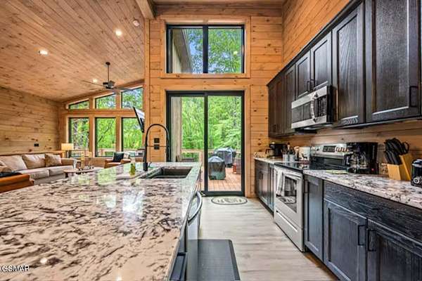 WAY BELOW MARKET VALUE!!!! Motivated seller!!!! Your Smoky Mountain dream cabin awaits! Perfectly nestled in Wears Valley, this luxurious retreat places you just minutes from Pigeon Forge, Townsend, and a national park entrance-close to all the attractions yet tucked away in a serene and private setting. This beautifully crafted cabin showcases the masterful work of one of the area's top builders, with high-end finishes, quality craftsmanship, and modern appliances throughout. The popular open floor plan offers a welcoming main level with a spacious living area, big-screen TV, cozy electric fireplace, well-appointed kitchen, and a half bath-ideal for entertaining. On the lower level, you'll find two comfortable bedrooms and two full baths, plus a large rec room with a pool table, and direct access to a covered deck with a bubbling hot tub from both bedrooms-the ultimate spot to relax after a day of adventure. With a turn-key package included, this cabin is fully ready for guests to enjoy as a mountain getaway, making it an outstanding investment opportunity or personal retreat. At only 3 years old, it's practically new and built to impress. Don't miss your chance to own this gorgeous Smoky Mountain cabin-schedule your showing today!