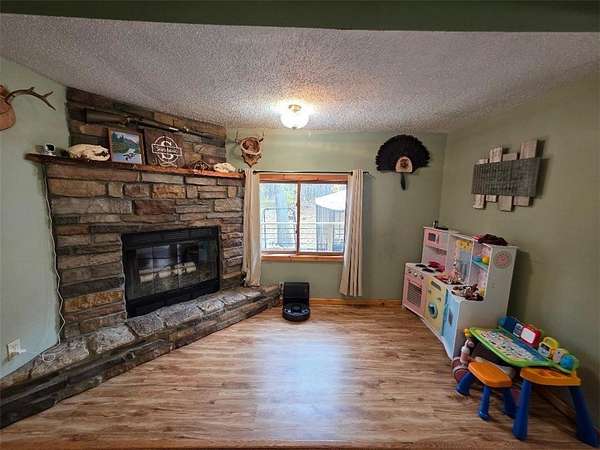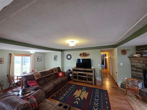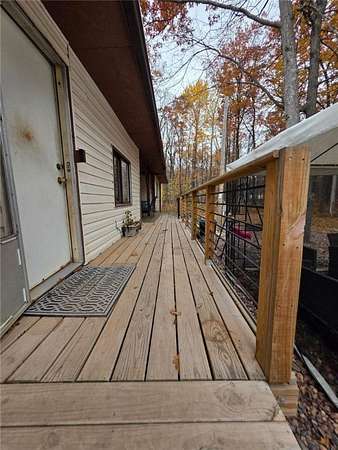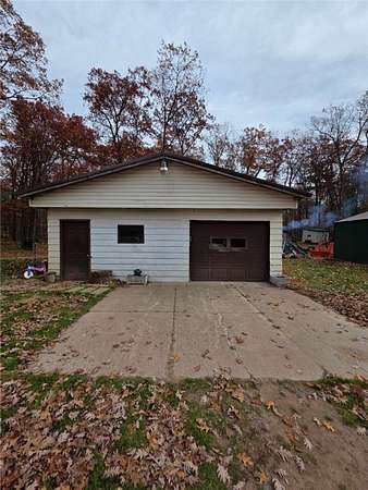 This charming three-bedroom, two-bathroom home is nestled on a heavily wooded ten-acre lot, offering a unique open concept design with 1,800 square feet of finished living space. The wood-burning fireplace creates a cozy ambiance for relaxing evenings. The property provides ample space for a large family, with numerous outdoor areas suitable for hobby farming or homesteading. Additionally, the home features a two-car detached garage, partially finished for use as a workshop or game room, and a spacious heated pole shed for storage, with full cement flooring throughout. The property adjoins public land for recreational activities and is conveniently located within a short driving distance of thousands of acres of state and public lands. It is also within one and a half hours of the Twin Cities.