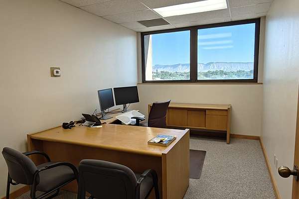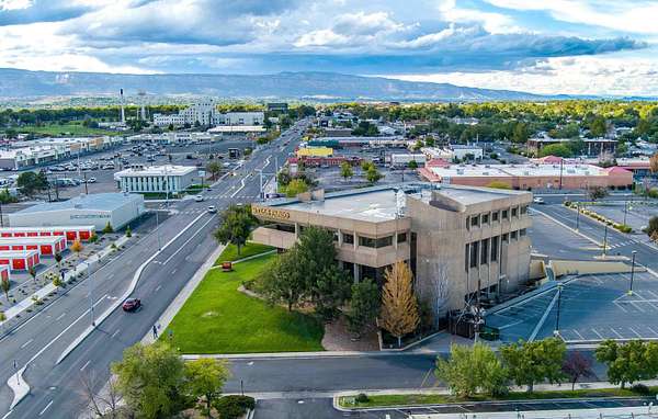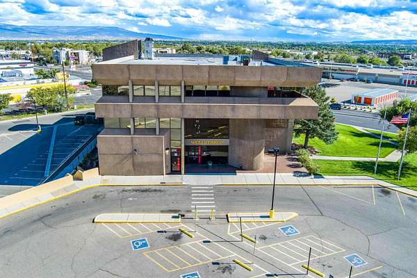 This large office building located in the heart of town, also sits on a large lot with plenty of potential. This bank building consists of 4 floors. The main floor lobby has two story-high windows and teller line, while the third and fourth floor feature executive office space, with a total of over 40 private offices, many open working areas, and a conference room on each floor. Upper floors tout breathtaking panoramic views of the Grand Valley. Drive-through teller booth could be repurposed as additional office space or auxiliary building or provide extra space to be developed. With 40,000 SqFt of office space and 4 acres of available lot, this property offers a variety of opportunities!