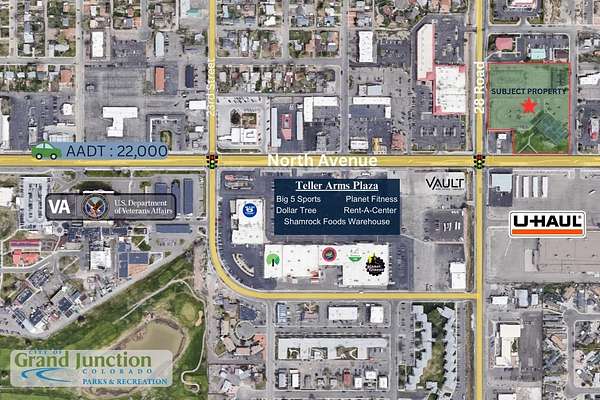 Traveling Eastbound on North Avenue, turn left (North) on 28 Road and take an immediate right (East) and then an additional right (South) to enter the parking lot for the main building. Additional building with drive through lanes is to the North.