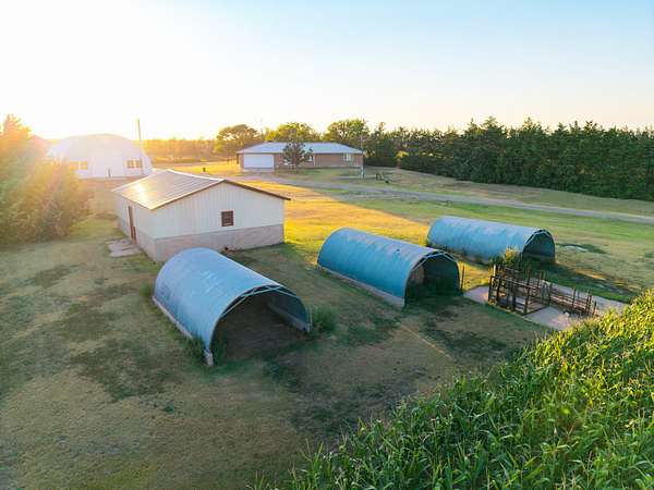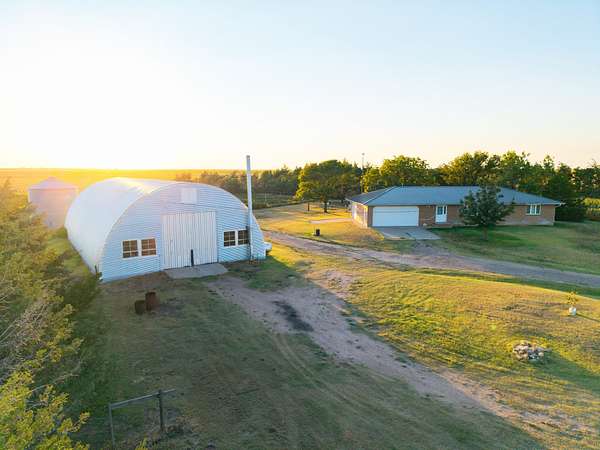 Take a look at this beautiful 82 +/- acre property in Logan County, Kansas! Located only 2 +/- miles south of Oakley, Kansas, this property offers a solid brick home, productive farmland, and a complete farmstead setup. The 5 +/- acre farmstead includes a 1,590 square foot home built in 1998, featuring three bedrooms, two bathrooms, a master suite with attached bath, a large living room, and a convenient laundry area. Custom cabinetry, dual-pane windows, and a three-car attached garage add to the home's functionality, while a covered back deck provides a comfortable place to relax and enjoy the wide-open views. The land is a well-balanced mix, including approximately 60+/- acres of quality tillable farmland made up mostly of Type 2 Keith Silt Loam soils with minimal slope. An additional 17+/- acres on the west side of the property have been planted to native grass, though not enrolled in CRP, adding valuable habitat and grazing potential. The remaining acreage makes up the farmstead itself, with outbuildings and livestock improvements already in place. Supporting the operation are several outbuildings, including a partially insulated 40' x 80' Quonset with concrete floor and 220v power, a 27' x 30' detached garage, two grain bins, and three small livestock shelters. Behind the home, the property is fully set up for livestock with corrals, an alleyway, a squeeze chute, and a heated water system. The farmstead is also well protected by a mature tree row and includes useful features such as a storm shelter and a reverse osmosis system. The home is serviced by central heat and electric air conditioning, with a propane furnace installed in 1998. The A/C system is original to the home, while the hot water heater was replaced in 2015. The roof was replaced in 2023, and the water well was reworked the same year. Annual property taxes are $3,018.70. Mineral rights will transfer to the buyer, along with the seller's quarter interest in oil royalties from a neighboring property. This well has been producing approximately $2,600 per year at an oil price of around $50 per barrel, providing an additional source of income beyond the farmland itself. This is a well-maintained country property with income potential from both farming and minerals, along with the infrastructure already in place for a turnkey livestock or farming operation! All showings are by appointment only. If you would like more information or would like to schedule a private viewing please contact Travis Glassman at (785) 672-7134 .