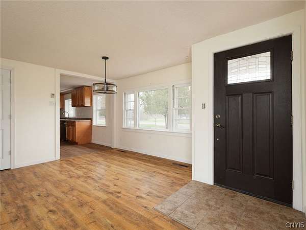 Bring your suitcase ready cozy 3 bedroom 1.5 bath ranch home offering modern finishes and convenient one-level living. This inviting ranch home offers a cozy living/dining area which flows right into the kitchen that was renovated in 2018. There is a full basement that has a workshop, storage area and a rec/family room that is just waiting for you to finish to your liking. From the living room go out onto your covered back porch where lazy evenings are meant to be spent and what a wonderful area to be able to entertain friends and family. The backyard is fenced in for your privacy and for the safety of your 4 legged family members! There is a one stall attached garage that has a wood chute that goes into the basement. Situated on 2 acres just outside the village limits in Chaumont this home is within walking distance to a marina, the public park and beach.