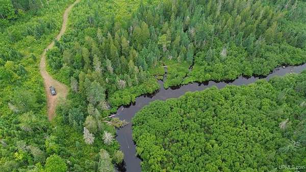 280 Acres of Pure Seclusion with River Frontage and Rustic Cabin. Escape to your own wilderness retreat on this stunning 280-acreproperty, offering ultimate privacy and natural beauty. Over two miles of well-established trail roads wind through gently rolling hills and a diverse hardwood and conifer forest. Enjoy more than 3,000 feet of frontage on the Mitchigan River, a remote, 14.9-mile waterway that forms part of the Lake Michigan watershed. Flowing along the boundary of Iron and Marquette counties, the Mitchigan River connects to the Fence River, Michigamme River, and ultimately the Menominee River system. Its pristine tributaries include outflows from Chief Lake, Spring hole Lake, and the West Branch Mitchigan River. An unnamed creek meanders for over a mile across the property, feeding three scenic ponds before joining the Mitchigan River in the southeast corner of the parcel. Perched beside one of these ponds is a rustic off-grid cabin, offering serene views, a peaceful setting, and the perfect basecamp for hunting, fishing, or simply unplugging from the world. Whether you're seeking a private hunting tract, a nature preserve, or a place to build your dream getaway, this property delivers unmatched beauty, abundant wildlife, and total seclusion.
