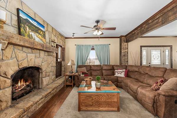 - Fireplace, Kitchen Island, Pantry, Window Treatments