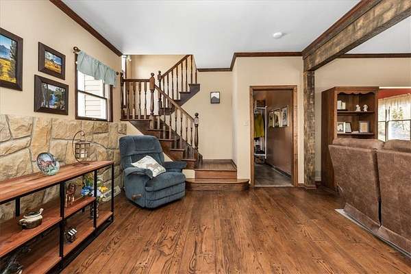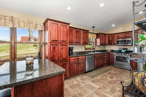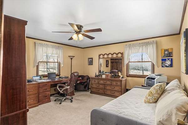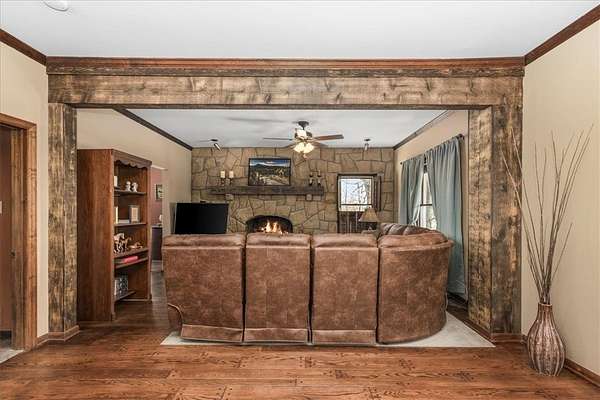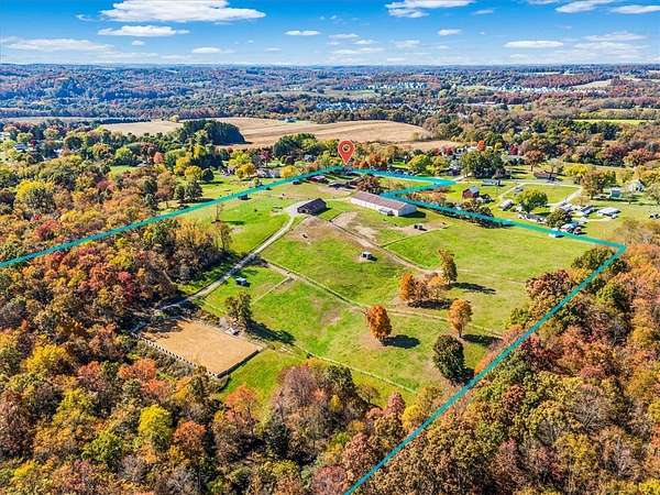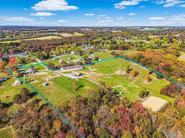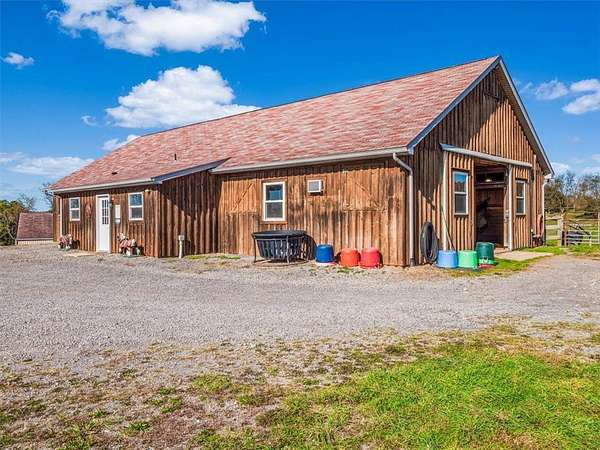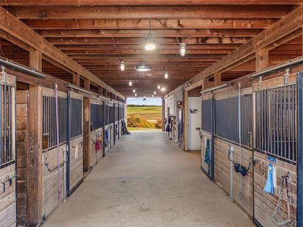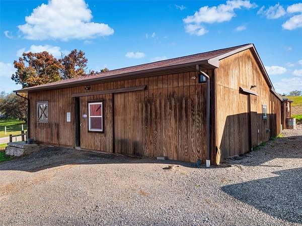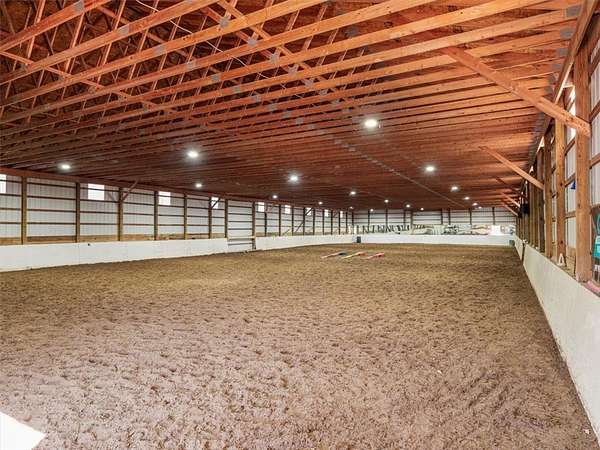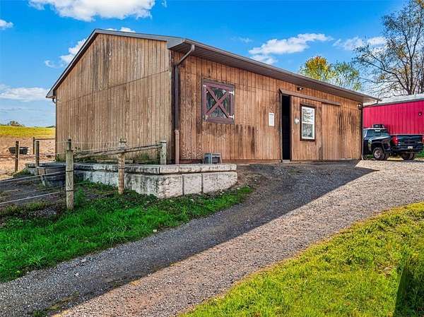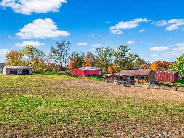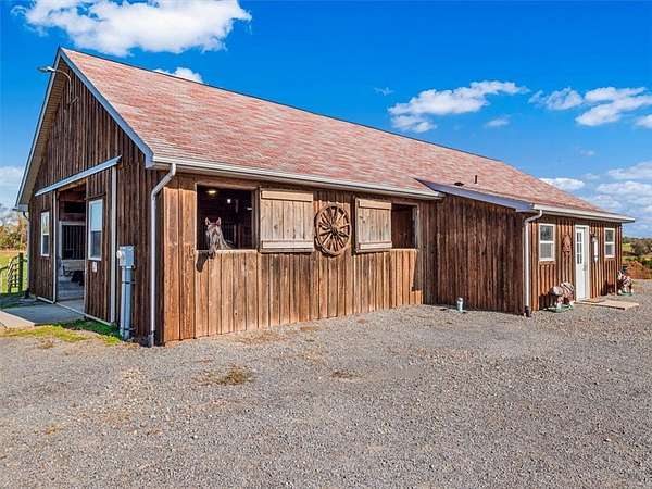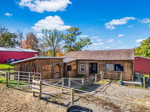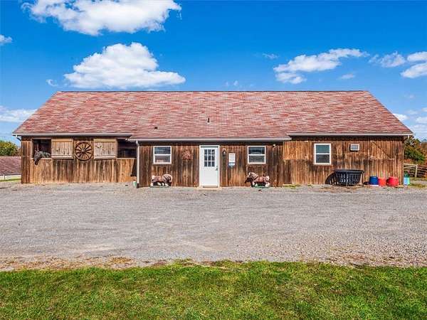 Your own EQUESTRIAN DREAM HOME AWAITS! Beautifully updated 3BR home on a private, scenic property perfect for horse lovers. Features massive bedrooms, hardwood floors, gas fireplace, gas hot water, partial wrap-around deck, and covered front porch. Remodeled kitchen with SS appliances, 9' vaulted ceilings, stone accent wall, and 1st-floor laundry. Interior French drains keep basement dry. 2018 roof w/ 30-yr shingles, Anderson windows, leaded glass doors, and fresh perennial landscaping. Equestrian amenities include 72x168 indoor arena with GGT footing, 12 rubber-matted stalls (one 12x15 foaling stall), heated tack rooms, 2 hot/cold wash stalls, 90x190 outdoor arena with ProStride footing, and 16x16 observation deck. Dusk-to-dawn lighting throughout. Cross-country course, stream w/ bridge, & wooded trails for trail riding or hiking. Borders a county agricultural conservation area--never to be developed. A rare blend of comfort, charm, and premier equestrian facilities! Public utilities.