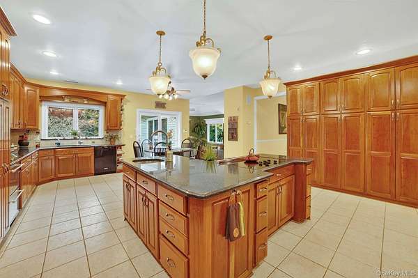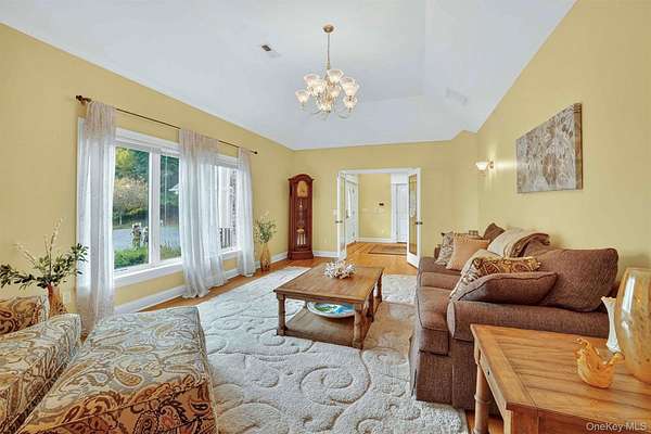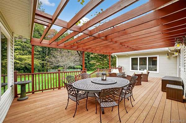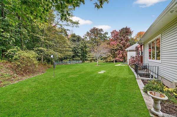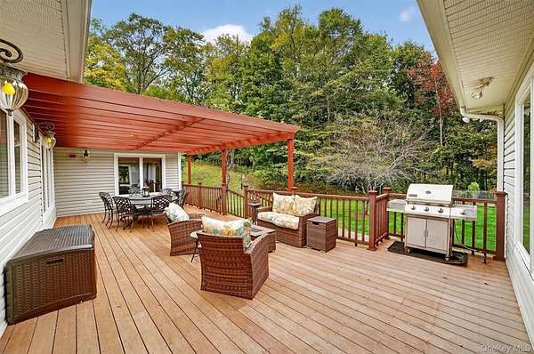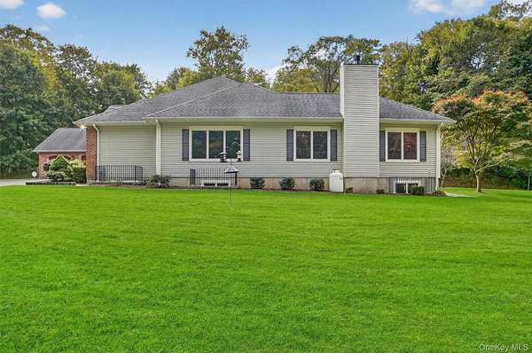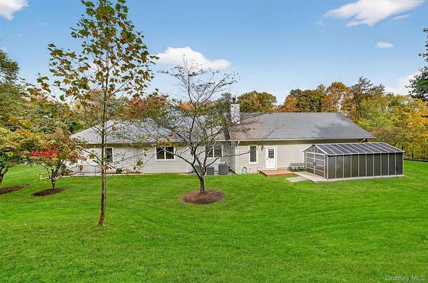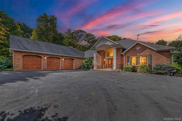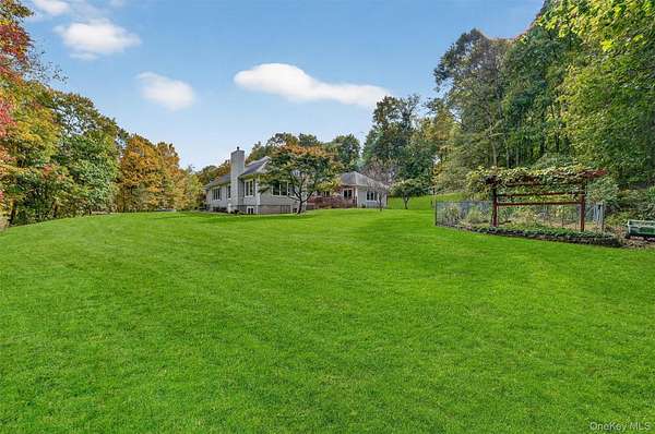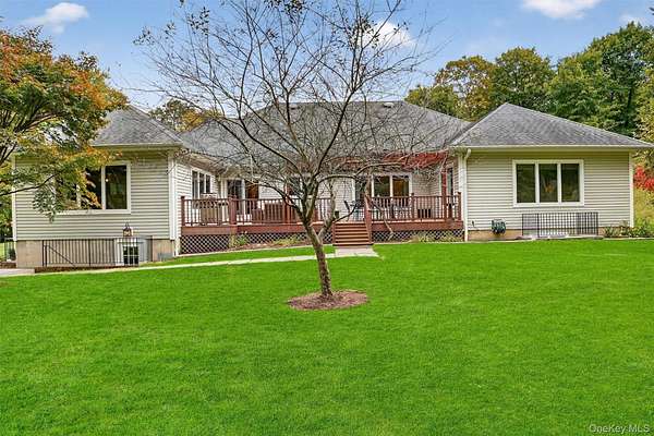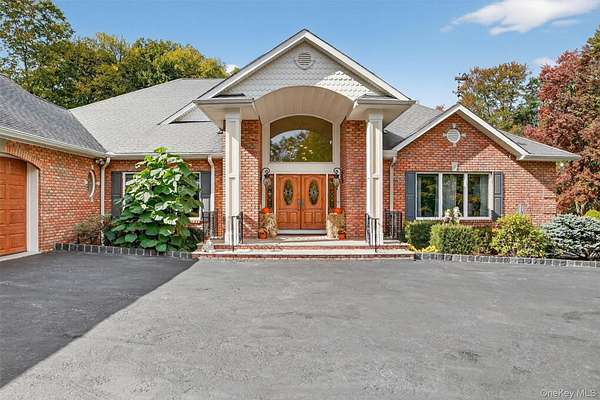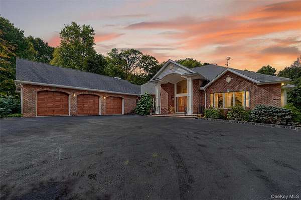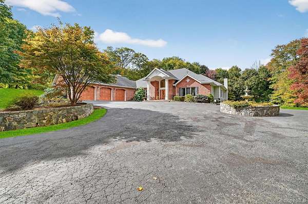 A long driveway leads to this custom-built sprawling ranch set on a secluded 16-acre parcel with unmatched privacy. As you approach this solid brick front home your eyes are drawn to the huge portico entrance. Step inside to an inviting two-story entryway w/parquet wood flooring, open to living room w/tray ceiling and leading to spectacular oversized kitchen with all the bells and whistles. Stunning cherry kitchen cabinets, granite countertops, Viking island cooktop, side by side Sub Zero refrigerator & freezer, Thermador double convection oven and 2 draw wine cooler. The kitchen opens to a great room w/high ceilings, built-in entertainment cabinetry and a propane gas fireplace. Sliding glass door exits out back to huge composite deck w/overhead vine covered trellis. The primary bedroom suite features luxurious bathroom with whirlpool tub, double sink vanity, his & her walk-in closets. Three additional oversized bedrooms, one converted to office w/custom build in cabinets. The walk-out lower level opens to endless possibilities: a recreation room game room, dance studio, gym, or simply space for storage. Brand new HVAC System 2024. Poured concrete walls with 9 ft ceilings, a wine cellar, multiple oversized windows, central vacuum and dual 275 gal above ground oil tanks. Original builder/owner planned a separate entry to basement for a legal accessory apartment with its own private entrance. Don't miss this rare opportunity to own a distinguished residence in one of Westchester's premier areas.