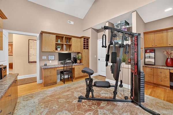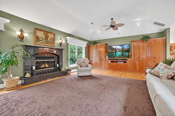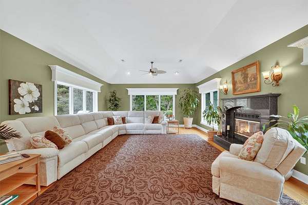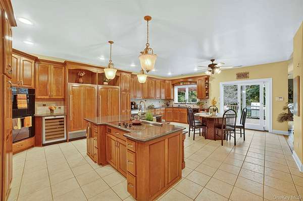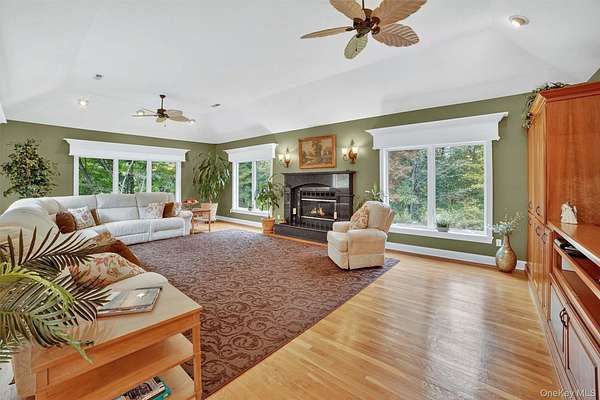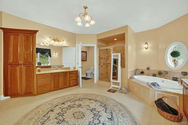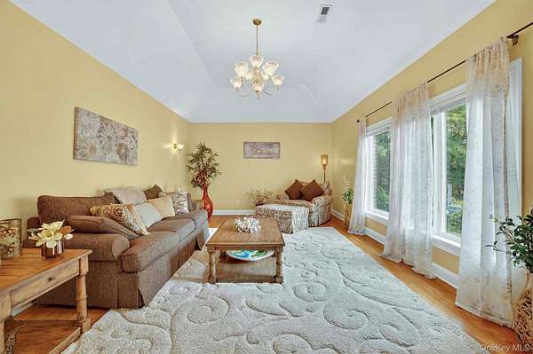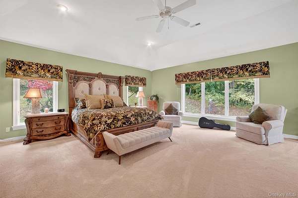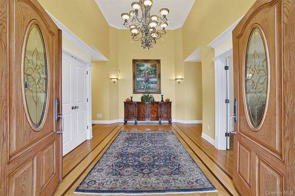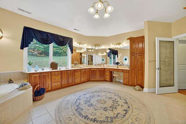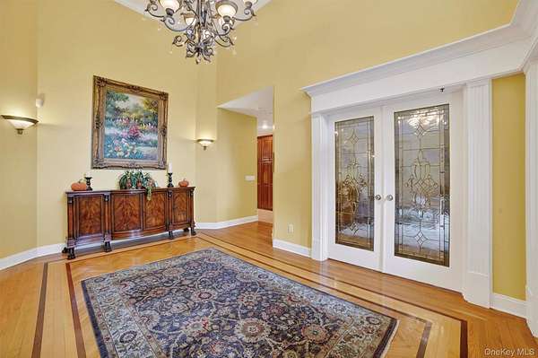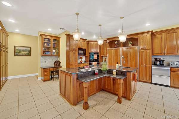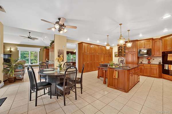 A long driveway leads to this custom-built sprawling ranch set on a secluded 16-acre parcel with unmatched privacy. As you approach this solid brick front home your eyes are drawn to the huge portico entrance. Step inside to an inviting two-story entryway w/parquet wood flooring, open to living room w/tray ceiling and leading to spectacular oversized kitchen with all the bells and whistles. Stunning cherry kitchen cabinets, granite countertops, Viking island cooktop, side by side Sub Zero refrigerator & freezer, Thermador double convection oven and 2 draw wine cooler. The kitchen opens to a great room w/high ceilings, built-in entertainment cabinetry and a propane gas fireplace. Sliding glass door exits out back to huge composite deck w/overhead vine covered trellis. The primary bedroom suite features luxurious bathroom with whirlpool tub, double sink vanity, his & her walk-in closets. Three additional oversized bedrooms, one converted to office w/custom build in cabinets. The walk-out lower level opens to endless possibilities: a recreation room game room, dance studio, gym, or simply space for storage. Brand new HVAC System 2024. Poured concrete walls with 9 ft ceilings, a wine cellar, multiple oversized windows, central vacuum and dual 275 gal above ground oil tanks. Original builder/owner planned a separate entry to basement for a legal accessory apartment with its own private entrance. Don't miss this rare opportunity to own a distinguished residence in one of Westchester's premier areas.