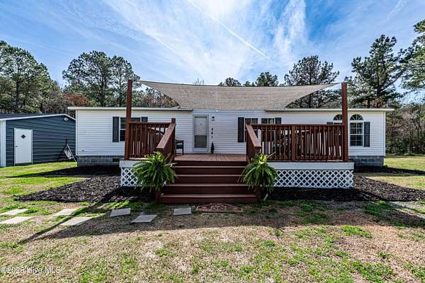 Welcome to 281 Dell Brock Road in Beulaville, NC. 10 minutes from Walmart, 30 minutes from Camp Lejeune and 30 minutes from New River Air Station. This 3 bedroom, 2 bathroom home is situated on 1.76 acres offers peaceful country living with several important updates. The home features fresh paint throughout, a heat pump installed in 2020, new roof (2025), new air handler/fan (2025), new stove (2025). Additional improvements include a wrapped crawl space for efficiency and durability. Enjoy outdoor living with a welcoming expansive front porch with sun shade, perfect for relaxing afternoons and a concrete back patio ideal for grilling or entertaining. The 1.76 acre property offers plenty of room for gardening, hobbies, or small homesteading opportunities with two storage buildings to store all the tools and equipment. The yard even features a chicken coop and apple trees that produced apples last year.