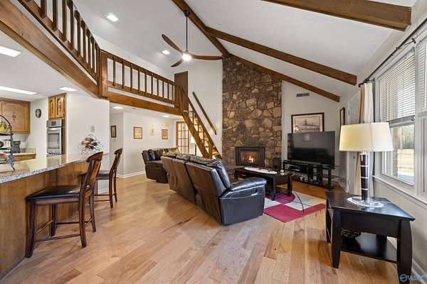 This picturesque property has been thoughtfully transformed into a quaint, fully fenced, solar-gated farmstead designed for peaceful living. The cozy home features updated HVAC, distribution ducting, added insulation, wood and tile flooring, and a kitchen with granite countertops. The primary bedroom addition offers a private retreat with French doors opening to the porch and a beautifully upgraded primary bathroom. A freshly painted hall bath adds a crisp touch. A standout loft overlooks the floor-to-ceiling stone gas fireplace, creating a warm, inviting living space. Outside enjoy the sculpted patio and breathtaking sunsets, ideal for a young family or couple dreaming of a small homestead.