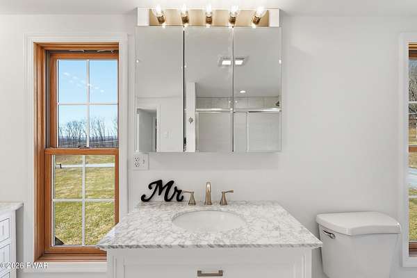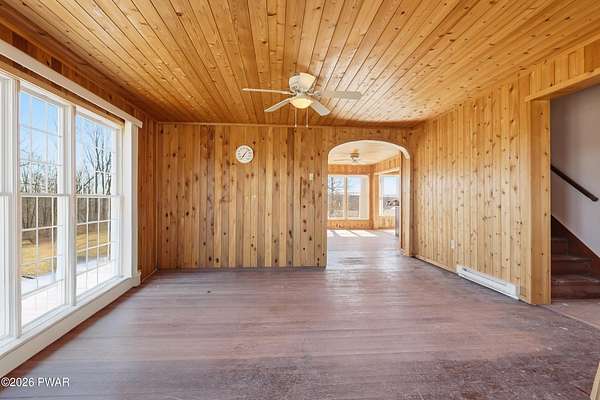Introducing this beautifully renovated 4 bedroom, 2 full bath and 1 half bath home on 1.9 private acres just minutes from downtown Honesdale and located in the Wayne Highlands School District. Offering space, privacy, and convenience, this property delivers a peaceful country setting while still being close to town. From the moment you step inside, the home feels bright, open, and welcoming, with large windows throughout that bring in abundant natural light and highlight the surrounding landscape. Warm wood accents and generous living spaces create a comfortable atmosphere that blends character with modern updates. The newly refreshed kitchen flows easily into the dining area, making it a natural gathering place for everyday living or hosting friends and family. The layout offers a convenient first-floor bedroom, while three additional bedrooms upstairs provide plenty of space for family, guests, or home office flexibility. The home also features two spacious full bathrooms and a half bath, along with a full walk-out basement offering excellent storage and potential for future finishing. Step outside and enjoy the privacy of 1.9 acres of open space, complemented by multiple outbuildings and barns ideal for storage, workshop space, hobbies, or equipment. The setting provides a quiet retreat while remaining only minutes from historic downtown Honesdale's shops, restaurants, and local amenities. If you've been searching for privacy, space, and a move-in ready home close to town, this property offers a rare opportunity to enjoy the best of both.