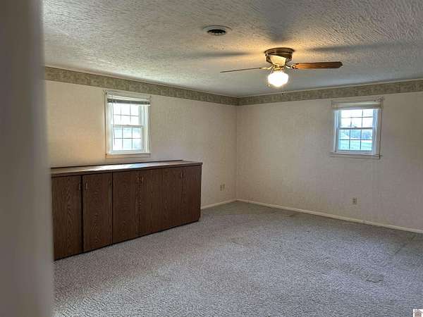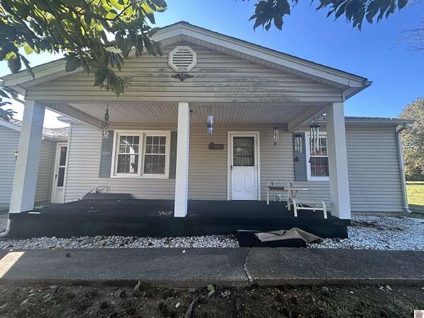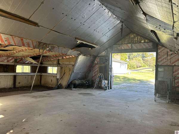 Enjoy peaceful country living just minutes from town with this 3-bedroom, 1.5-bath home on 2.2 acres. Offering 1,964 sq ft of space, this property features a large den with a full brick wall and wood-burning Ashley stove, a spacious living room, kitchen, and two utility rooms. The detached 1,176 sq ft shop/garage is fully wired and ready for projects or extra storage. A beautiful pond sits out back perfect for relaxing or fishing. Located at the end of a quiet dead-end road with minimal traffic, just minutes from town the hospital, and Graves County schools. The home has great bones and tons of potential for someone ready to make it their own with a little updating and TLC.