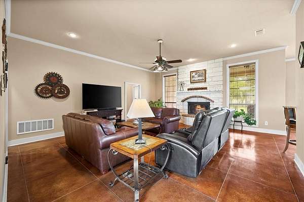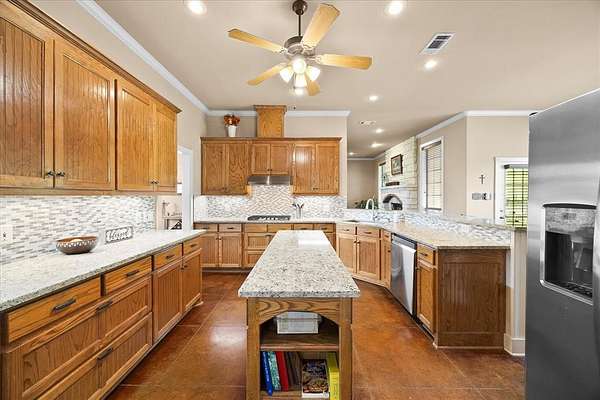 This 4-bedroom layout is spread out in a way that actually makes sense, giving everyone their own space while still feeling connected. The kitchen has been fully refreshed with new countertops, backsplash, sink, 5-burner cooktop, vent hood, and oven, and it opens right into the eat-in area and a large living room with a beautiful stone fireplace.